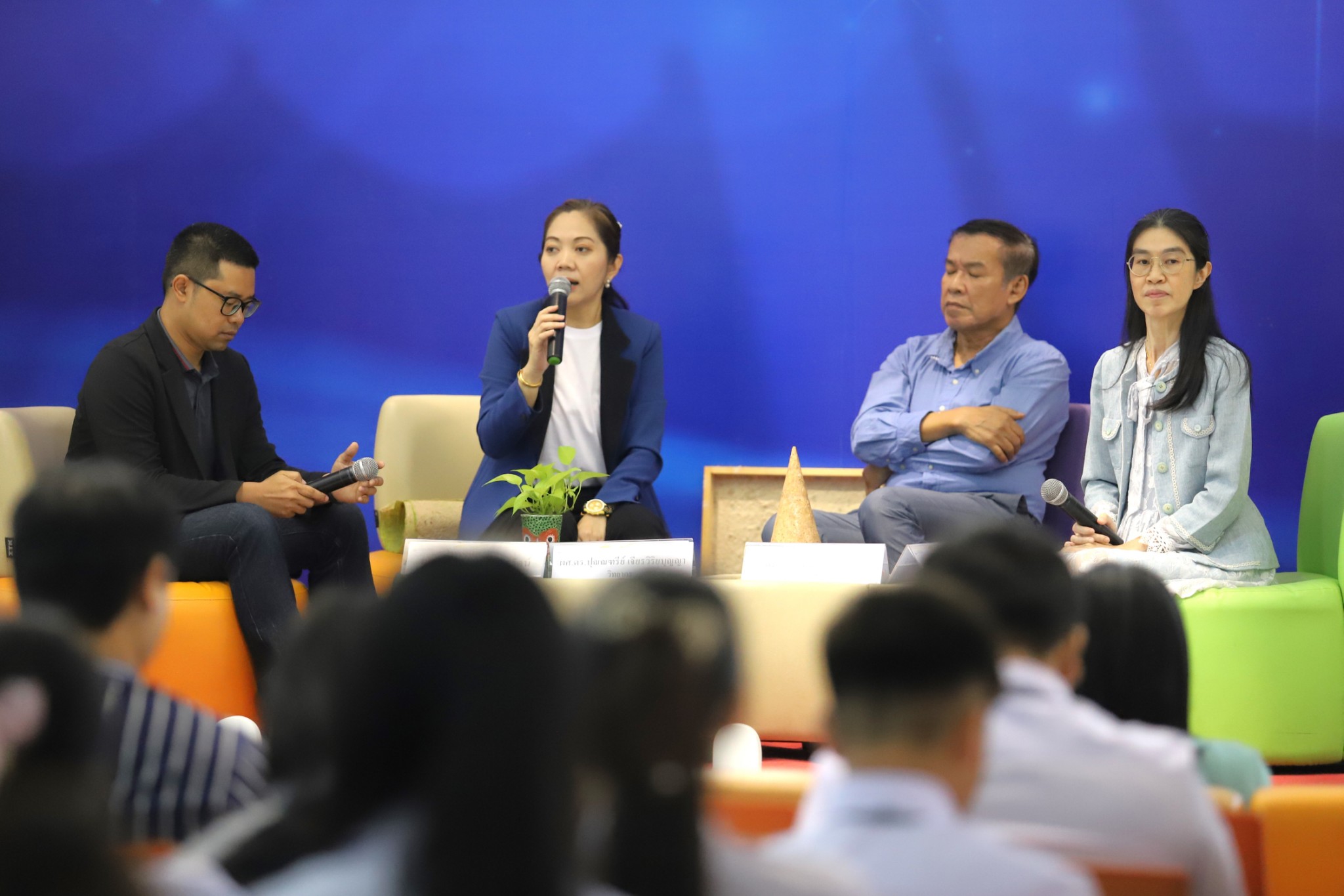 ช่วงถัดมาเป็นการบรรยายและเสวนาในหัวข้อ “การจัดการขยะเป็นศูนย์ (Zero Waste): แนวคิดและนวัตกรรมเพื่อชุมชน” โดย อาจารย์วีระศักดิ์ จุลดาลัย, ผศ.ดร.ปุณณฑรีย์ เจียวิริยบุญญา, อาจารย์พณิฐา ยงพิทยาพงศ์ และผู้ช่วยศาสตราจารย์ ดร.วรมิญช์ พันธุรัตน์ มีการนำเสนอผลงานวิจัยและนวัตกรรม เช่น “พานบายศรี Zero Waste” ที่พัฒนาจากแนวคิดการนำขยะศักดิ์สิทธิ์อย่างใบตองจากพานบายศรีมาหมักด้วยโซดาให้ได้เยื่อใบตอง และแปรรูปเป็นผลิตภัณฑ์ใหม่ที่เป็นมิตรต่อสิ่งแวดล้อม